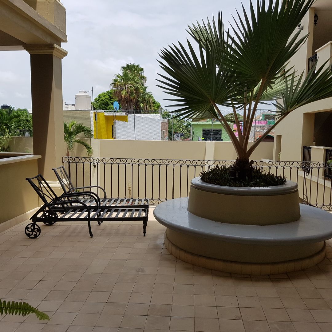 Departamento amueblado en El Centro histórico. A unos metros del teatro Angela Peralta. Dos recamaras, sala comedor cocina de granito, baño, terraza, elevador y estacionamiento privado.