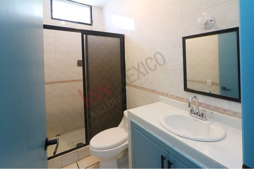 Descripción de la Propiedad Planta Baja: Cochera para dos autos Sala y comedor Cocina integral Tres recámaras con clóset Dos baños completos Patio Cuarto de lavado Aljibe con capacidad de 10,000 litros Aires acondicionados instalados Planta Alta: Tres recámaras Dos baños completos Sala y comedor Cocina integral Cuarto de lavado Terraza Aires acondicionados Calentador solar de agua (para toda la casa) Características adicionales: La propiedad cuenta con sistema de protección contra ingreso de agua o materiales no deseados desde el exterior, mediante dos válvulas y un check de 4" instalados en los registros pluviales y sanitari
