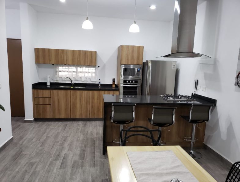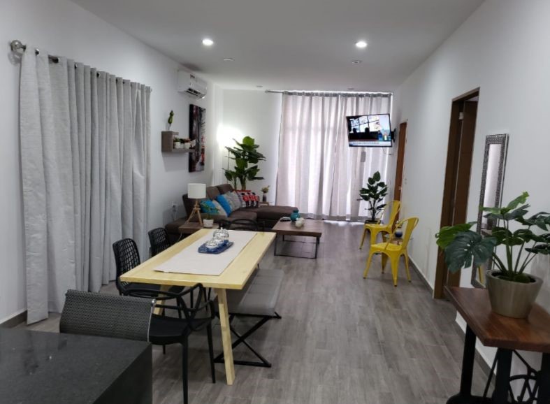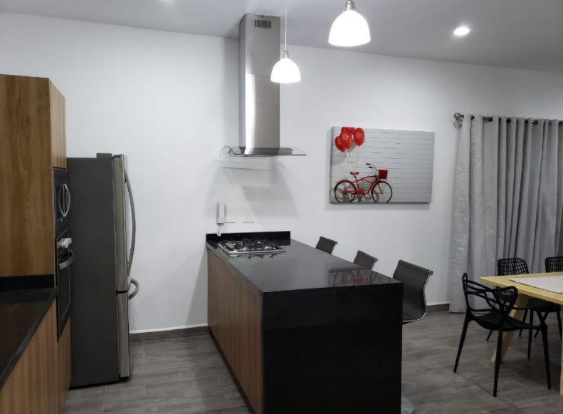 Departamento se encuentra en la Zona Dorada, dentro del prestigioso fraccionamiento Sabalo Country, a solo media cuadra del parque y la iglesia, lo que le otorga una ubicación inmejorable. Situado en el segundo piso, el inmueble cuenta con estacionamiento techado y eléctrico para mayor comodidad. Con más de 100 m² de espacio, el departamento ofrece una sala-comedor de amplias dimensiones, ideal para convivir y disfrutar. La cocina integral está cuidadosamente diseñada con acabados de alta calidad y muy buen gusto. Además, dispone de 2 recámaras espaciosas, cada una con closet integrado, y 2 baños completos que proporcionan total comodidad. El departamento está completamente amueblado