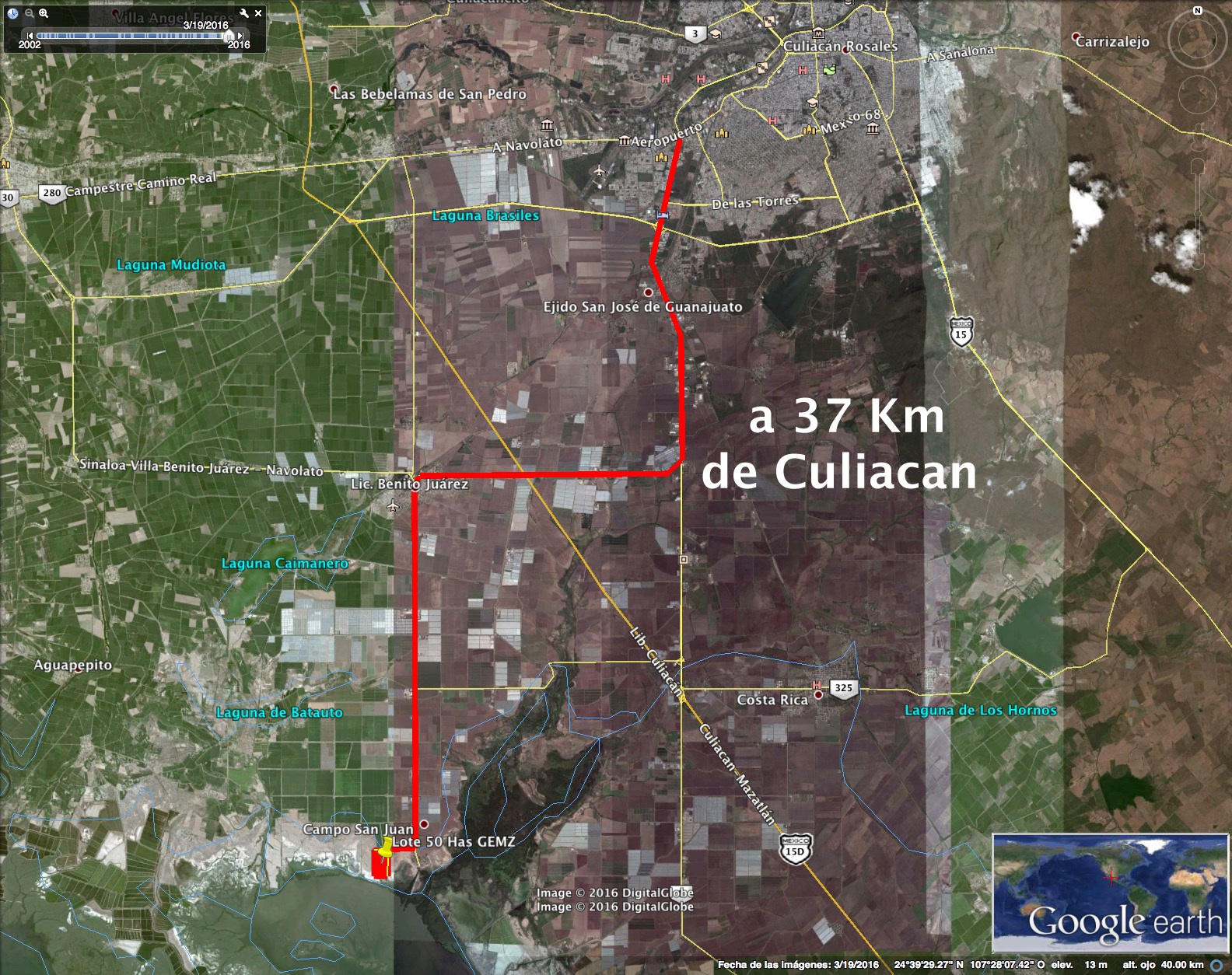 Terreno en el corazón de la zona agrÃcola de Culiacán, limita al sur con las marismas, con acceso a un kilometro de la carretera a La puentes, servicio de agua y luz a un km. Vocación idónea para granja acuÃcola con dren y canal.