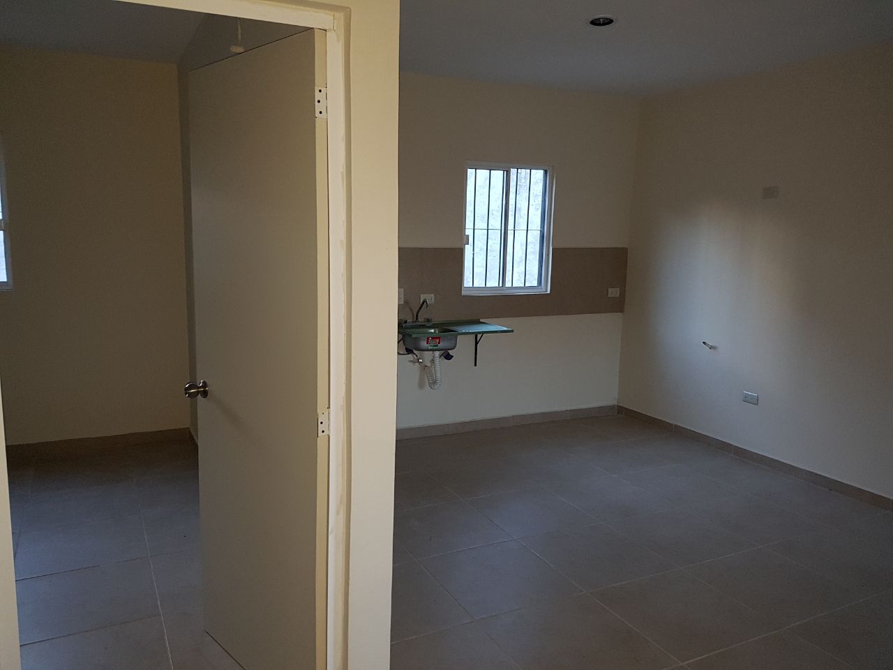 Casa nueva en venta, colonia Valle del Ejido. Dos recamaras. Sala comedor cocina. Cocina con tarja. Un baño completo. Pisos de porcelanato. Azulejo y protecciones. Instalaciones eléctricas y tuberÃas. Frente con estacionamiento y área para jardÃn. Excedente trasero para patio o ampliación.