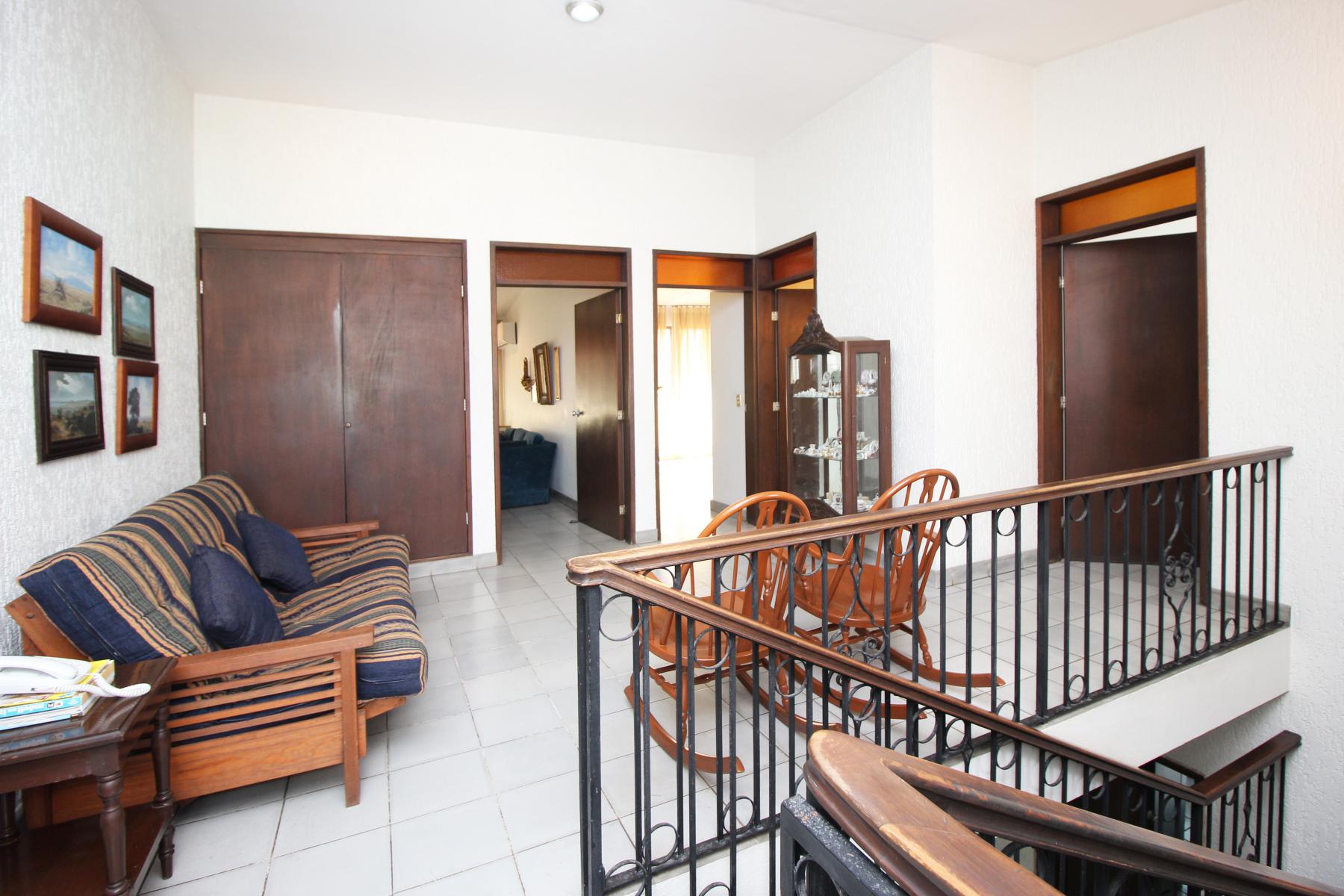 La casa cuenta con cochera techada, recibidor, estancia, cocina de cedro, comedor , amplÃa sala con puerta corrediza para conectar al jardÃn trasero, 3 1/2 baños , biblioteca, 4 recamaras con closets , cuarto de servicio con baño y sistema de seguridad.