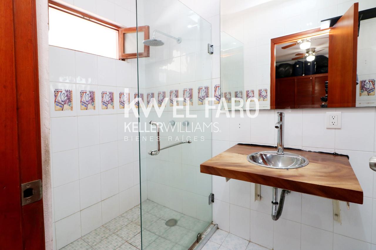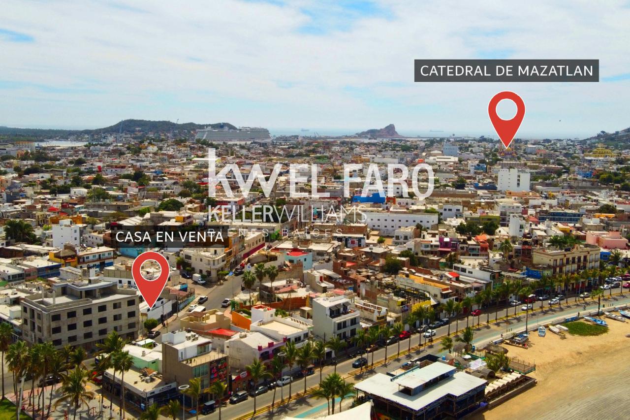 Casa de dos niveles ubicada a solo una cuadra del mar, con vista al este desde la estancia y la azotea. Propiedad ideal para inversión, ya que cuenta con dos unidades rentables con entradas independientes. Se encuentra sobre una avenida de alta densidad vehicular, lo cual la hace excelente también para giro comercial, hostal o renta vacacional. CARACTERÍSTICAS GENERALES: Recién remodelada, conservando acabados antiguos y madera en excelente estado Muy segura, con bardas altas y portón eléctrico Ideal para vivienda, negocio o desarrollo turístico PLANTA BAJA: Cochera para 5 autos Sala Comedor Cocina 3 amplias recámaras (2 con baño completo y tina) 1 baño compl