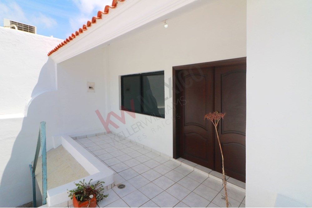 Descripción de la Propiedad Planta Baja: Cochera para dos autos Sala y comedor Cocina integral Tres recámaras con clóset Dos baños completos Patio Cuarto de lavado Aljibe con capacidad de 10,000 litros Aires acondicionados instalados Planta Alta: Tres recámaras Dos baños completos Sala y comedor Cocina integral Cuarto de lavado Terraza Aires acondicionados Calentador solar de agua (para toda la casa) Características adicionales: La propiedad cuenta con sistema de protección contra ingreso de agua o materiales no deseados desde el exterior, mediante dos válvulas y un check de 4" instalados en los registros pluviales y sanitari